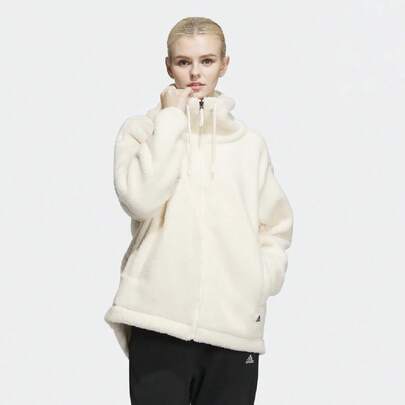 Adidas Lounge Jacket, Solid Color Loose Fleece Sports Jacket, Stand Collar Casual Jacket, Women's - White - View 1