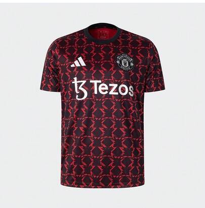 Adidas Manchester United Football Training Short Sleeve Round Neck Warm-Up Jersey - Black and Red - View 1