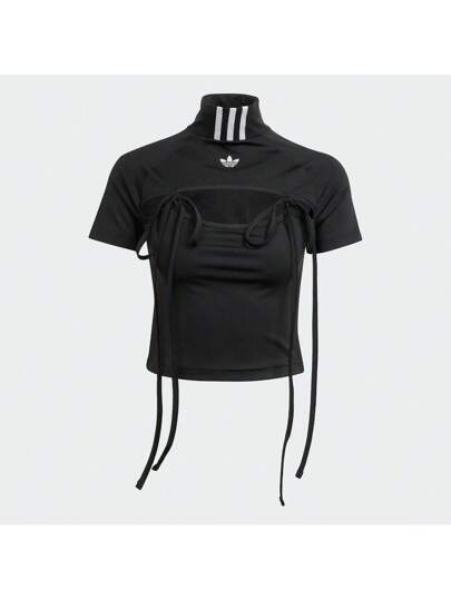 Adidas Originals Women's Ribbon Crop Top Short Sleeve T-Shirt Knit Scoop Neck TJX2537 - Black - View 1