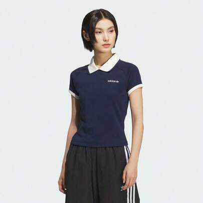 Adidas Originals Women's Short Sleeve Polo Shirt, Knitted Collar - Blue - View 1