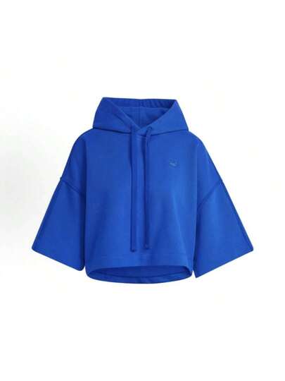 Adidas Women Plain Logo Short Hooded Sweatshirt HK7235 - Blue - View 1
