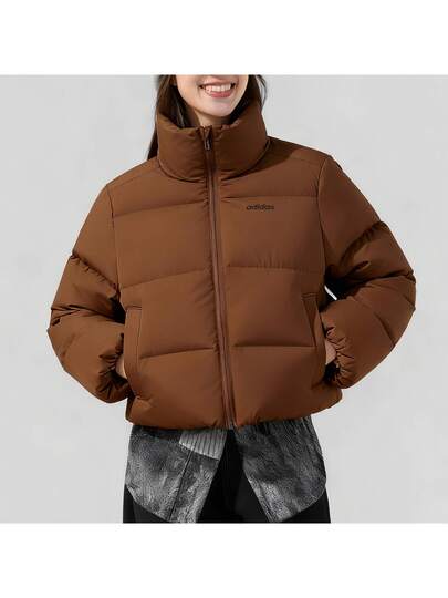 Áo khoác phao dài tay màu trơn ấm áp thường ngày cho nữ, mùa thu/đông
