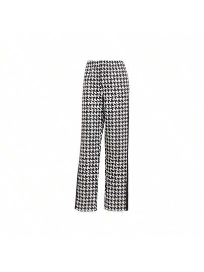 Adidas Women's Houndstooth Casual Classic Knit Sports Pants, Spring/Autumn - Black and White - View 1