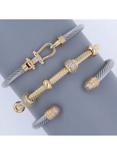 Adjustable Stainless Steel Bracelet With Dual-Tone Gold And Silver Design, Unisex, Suitable For Daily Wear, Punk/Goth Style, Best Gift For Holidays, Jewelry - Gold and Silver - View 1