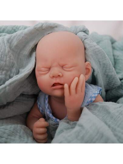 Adorable 12 Inch Reborn Doll Boy In Wearing Blue Fish Pattern Outfit & Closed Eyes, Bathable Soft Touch Realistic Silicone Doll, Ideal Children's Birthday Gift, Collectible Toy, Halloween/Christmas Gift - Blue - View 6