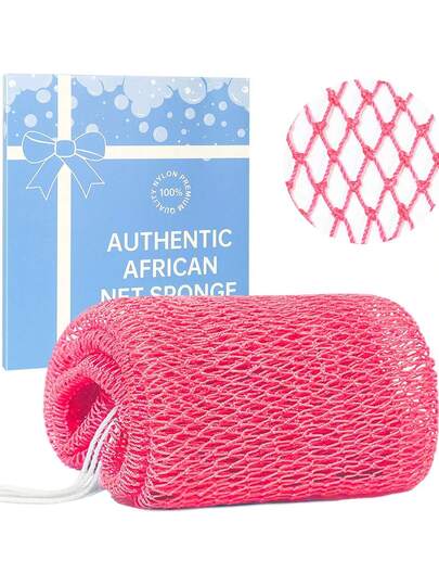 African Net Sponge, Authentic Exfoliating Bath Sponge, Deep Cleansing, Long-Lasting Scrub, Unisex Bath Product, Body Scrub Exfoliating Bath Sponge, Removes Dead Skin, Elongated Flat Design, Suitable For Back, Feet And Scalp - Bath Accessories - Baby Pink - View 1