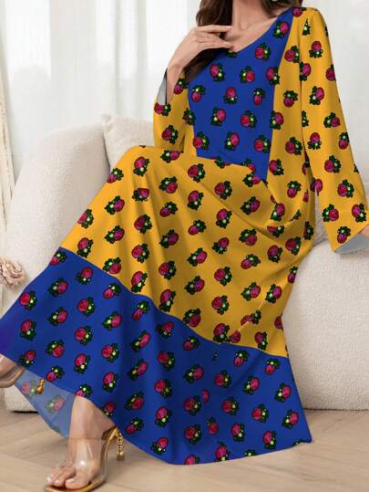 Al Najma Women's Floral Print Long Sleeve Casual Arabian Style Dress,Modest - Multicolor - View 1
