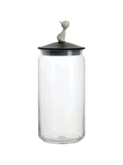 Alessi A Di Miòjar Glass Jar For Cat Food With Lid In Thermoplastic Resin Black