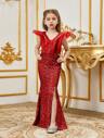 Alisa&Leo Teen Girls' Shimmering V-Neck Sequin Graduation Dress With Tulle Skirt - Formal Dress For Graduation Balls, School Events & Teen Galas