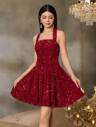 Alisa&Leo Teen Girls' Shimmering V-Neck Sequin Graduation Dress With Tulle Skirt - Formal Dress For Graduation Balls, School Events & Teen Galas