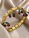 18K Gold Plated Stainless Steel Luxe Retro Bangle Bracelets Set With Green Cubic Zirconia For Women, Elegant Mom Gift Christmas Thanksgiving Halloween Wedding Rave/Prom/Party/Daily/Beach Accessories Gift For Anniversary Valentine's Day Boho Jewelry Birthday Bridesmaid Gifts
