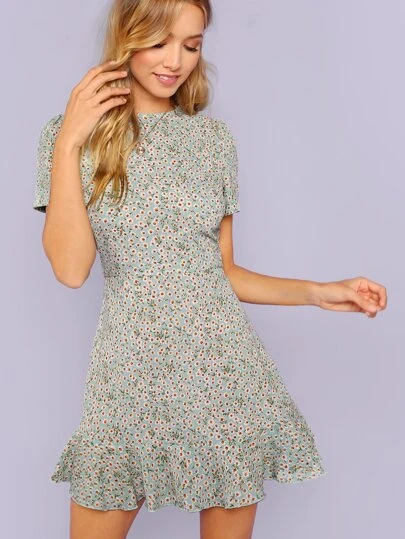 SHEIN VCAY Ditsy Floral Flounce Hem Dress - Multicolor - View 5