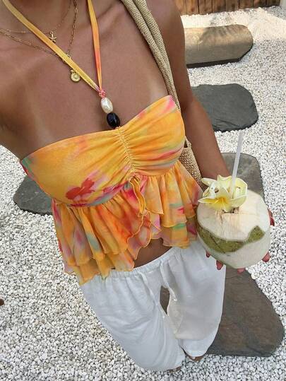 Aloruh Women's Tie-Dye Ruffle Hem Halter Neck Vacation Camisole - Multicolor - View 1