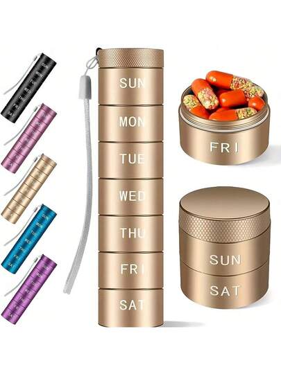 Aluminum Alloy Weekly Waterproof Pill Storage Box, Moisture-Proof Metal Medicine Box, Pill Rack, Travel Medicine Box For 7 Days, Portable Storage Container For Vitamins, And Supplements - Multicolor - View 1