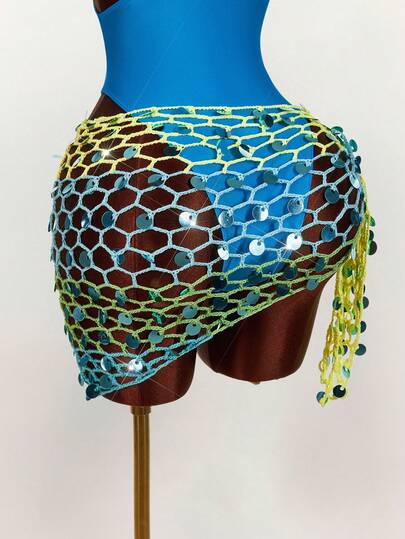 Amplova Women's Gradient Sequin Embroidered Sheer Cover-Up, Sexy & For Vacation, Music Festival, Cute Spring/Summer Swimwear - Multicolor - View 1