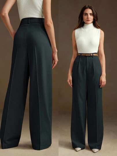 Anewsta Petite Women's Petite Office Wear Dark Grey Formal Trousers - Dark Grey - View 1