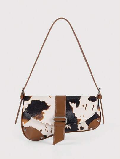 Animal Print Underarm Bag, Cow Print Studded Motorcycle Style Shoulder Bag, Cow Dot Print Women's Tote Bag Casual Underarm Bag, Y2K Hobo Bag, Crescent Bag, Street Style For Teen Girls Holiday Gifts, Party, Daily Dress, Work. Cow Print Bag, Casual Cow Print Pattern Purse For Women, Bags Ladies Elegant , Polka Dot - Brown - View 1