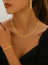 2pcs Stainless Steel Women Jewelry Set, Moderate Necklace Length, Vintage Chic Luxury Style, Gold Circular Chain Necklace & Bracelet Set, Delicate Details, Suitable For Daily Wear And Commuting, All Seasons