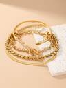 Aomogo 2pcs/Set Fashionable Elegant Versatile Stainless Steel Multi-Layer Pearl & Heart Bracelet + Necklace, Suitable For Women To Wear Anytime