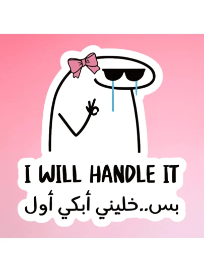Arabic Text Vinyl Sticker - Funny Confident Attitude Decal, Cartoon Character Wearing Bowknot And Sunglasses, "I WILL HANDLE IT" - Multicolor - View 1
