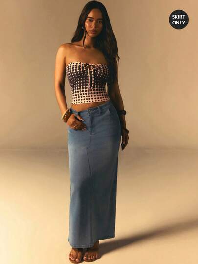 Athîral Women's Casual Washed Denim Skirt - Blue - View 1