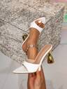 Women's White Pyramid Decor High Heel Mule Sandals, Elegant Party High Heel Slippers