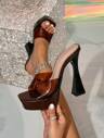Women's Fashionable Block Heel Black Dress High Heels With Transparent & Decorative Details, Suitable For Going Out