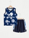 SHEIN Young Girls 2 Pieces Activewear Set, Granite Blue, High Stretch Fitted Sports T-Shirt With Criss-Cross Back Design And Leggings, Suitable For Home Fitness, Outdoor Walking And Jogging