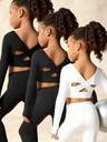 SHEIN Teenage Girls' Professional Sports Long Sleeve T-Shirt With Floral Hollow-Out Back Design, High Elasticity, Professional Sports Fabric, Black/White/Gray Multi-Color T-Shirt Set