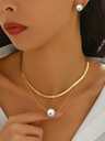 2pcs/Set New Versatile Autumn/Winter Fashion Metallic Style Earrings & Necklace Set