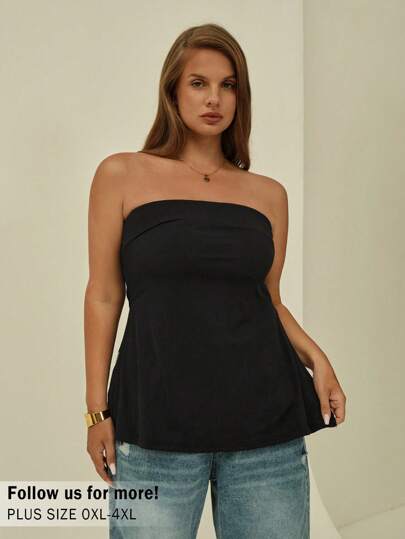 Auralis Plus Split Hem Tube Top Spring To Summer - Black - View 1