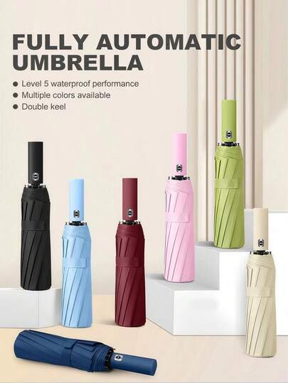 6. Automatic Folding Umbrella For Women & Men - Premium Windproof & Sun Protection Compact Travel Umbrella | Luxury Business Design With 24 Strong Ribs | Pink Umbrella (Sombrilla) For Heavy Rain & UV Shield, Perfect Portable Style