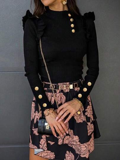 Autumn/Winter New Fashion Frill Trim Turtleneck Long Sleeve Knit Sweater - Black - View 1
