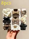 8pcs/Set Girls' Matte Multi-Color Hair Clips, Heart, Bow And Flower Shaped Small Hair Accessories, Suitable For All Seasons