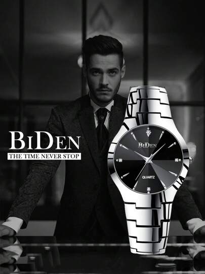 BIDEN 1pc Men's Watch, Fashionable Classic Quartz Watch, Waterproof, Perfect Gift For Men's Watch, Free Chain Link Remover+Box - Silver - View 1