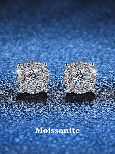 BLOVEMEE 2pcs Minimalist 925 Sterling Silver 0.3Carat X 2 Moissanite Stud Earrings, Suitable For Women's Daily Wear, Party, Vacation, Mother's Day, Wedding Anniversary, Birthday Jewelry Gift - EH0089M - View 1