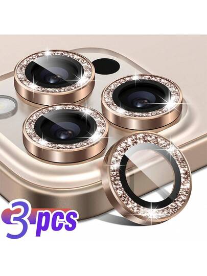 BOLLYMORE 3pcs Gold Metallic Ring Camera Lens Protector Film For IPhone 17 Pro Max / 17 Pro / 17 Air / 17 / 16 Pro Max / 16 Pro / 15 Pro Max / 15 Pro / 14 Pro / 13 Pro / 12 Pro / 11 Pro Max: 9H Hardness Tempered Glass - Compatible With Phone Cases, Anti-Fingerprint Coating, Luxury Aesthetic, Enhanced Night Photography (Bubble-Free, Compatible With Flash, High Clarity) - Gold - View 1