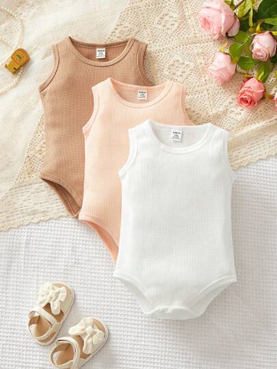 SHEIN Baby Boy 3pcs Waffle Knit Bodysuit - Multicolor - View 1