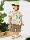 SHEIN 2pcs Baby Boy Summer Casual Vacation Cute White Leaf Pattern Loose Short Sleeve Shirt & Elastic Waist Shorts Set, Suitable For Birthday Party, Evening Party, Performance, Wedding, Baby Shower, 1st Birthday Celebration
