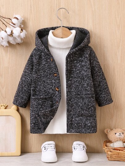 Baby Boy Double Pocket Hooded Coat Without Sweater - Grey - View 1