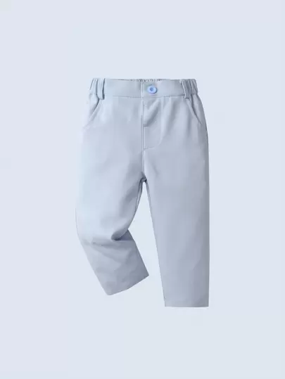 Baby Boys' Sky Blue Elastic Waist Plain Basic Pants, Suitable For Daily Wear In Spring And Autumn - Blue - View 1