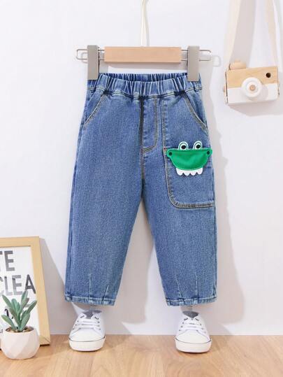 Baby Boys Cartoon Graphic Patched Pocket Jeans - Blue - View 1