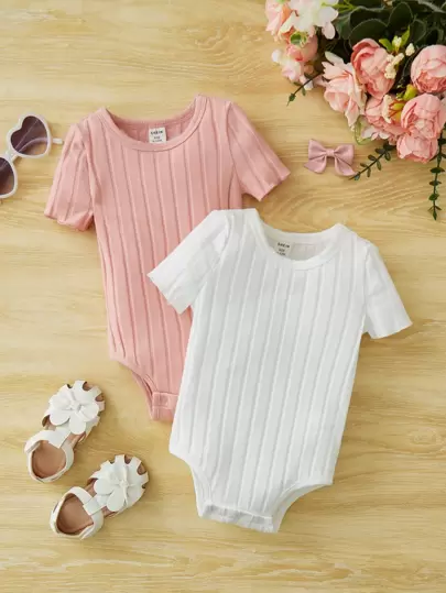 Baby Girl 2pcs Ribbed Knit Bodysuit - Multicolor - View 1