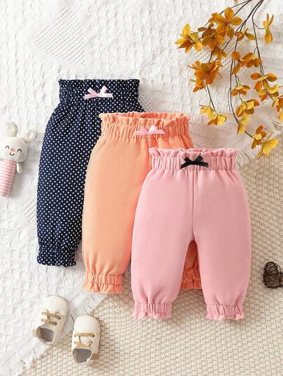 Baby Girl 3pcs Polka Dot Print Paperbag Waist Bow Front Pants - Multicolor - View 6