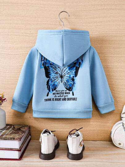 Baby Girl Butterfly & Slogan Graphic Thermal Lined Sweatshirt - Baby Blue - View 1