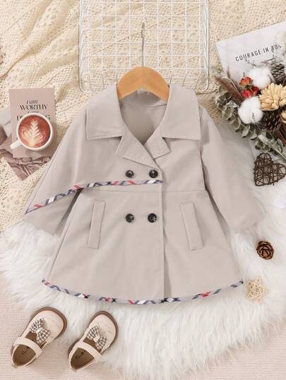 Baby Girl Double Breasted Contrast Binding Trench Coat - Apricot - View 1