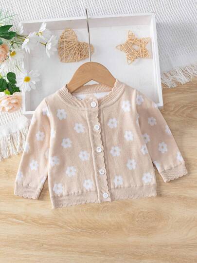 Baby Girl Floral Pattern Scallop Trim Cardigan - Multicolor - View 1
