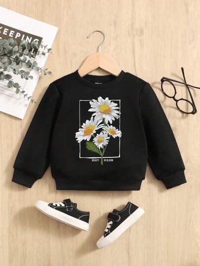 Baby Girl Floral & Slogan Graphic Sweatshirt - Black - View 1