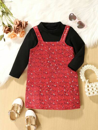 Baby Girl Solid Tee & Ditsy Floral Print Cami Dress - Red - View 1