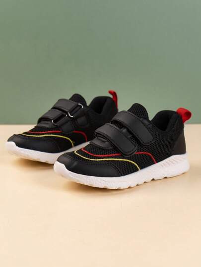 Baby Girls Embroidery Detail Hook-and-loop Fastener Running Shoes For Outdoor - Black - View 1